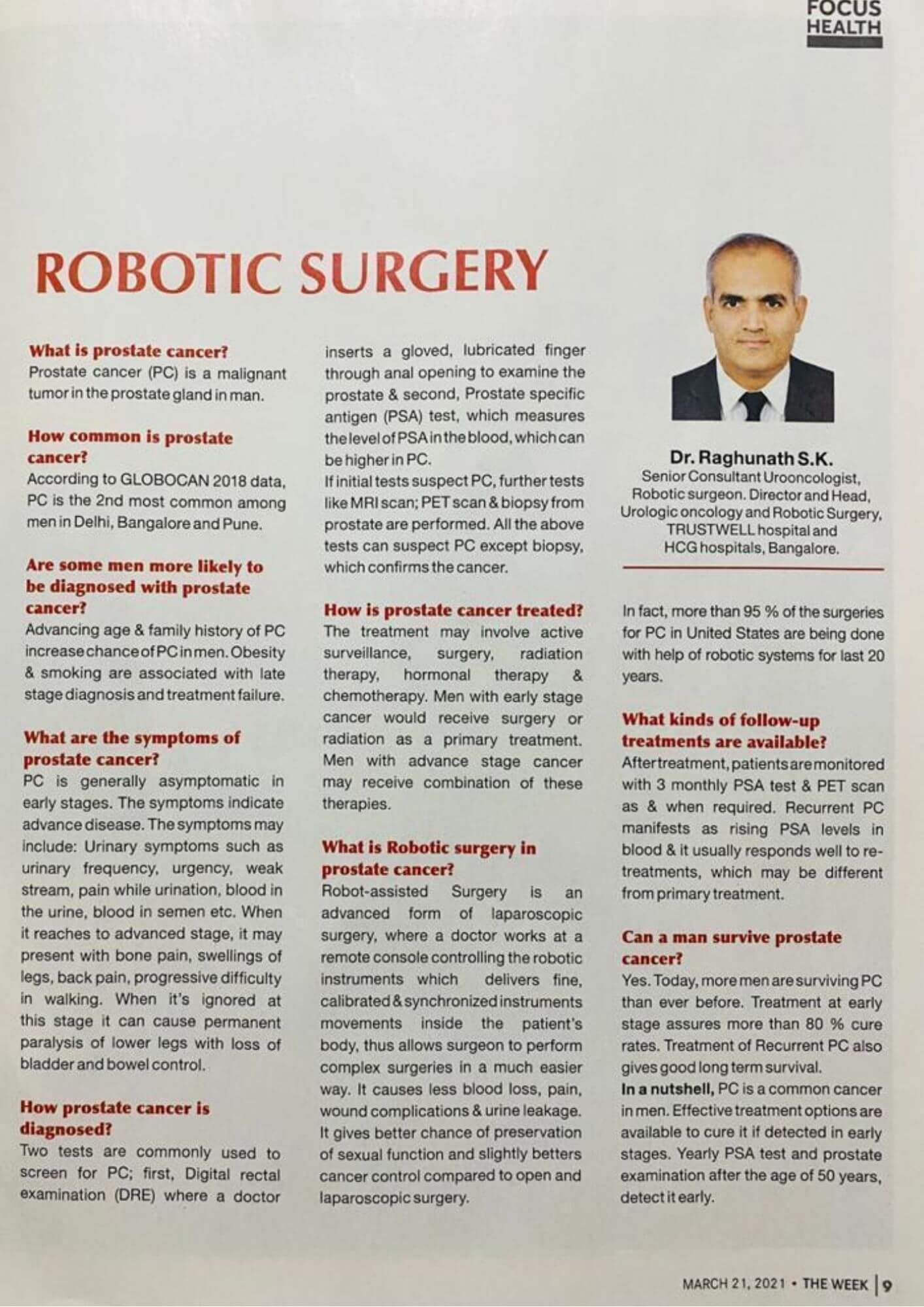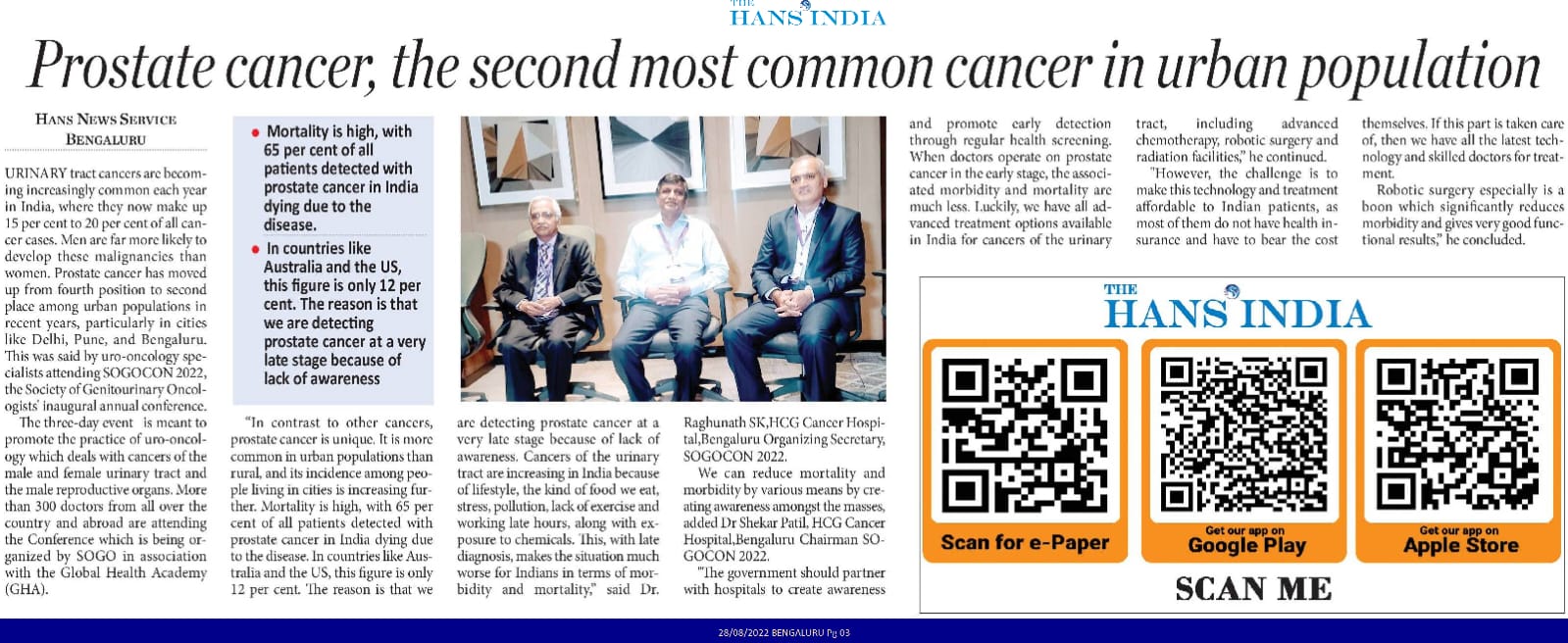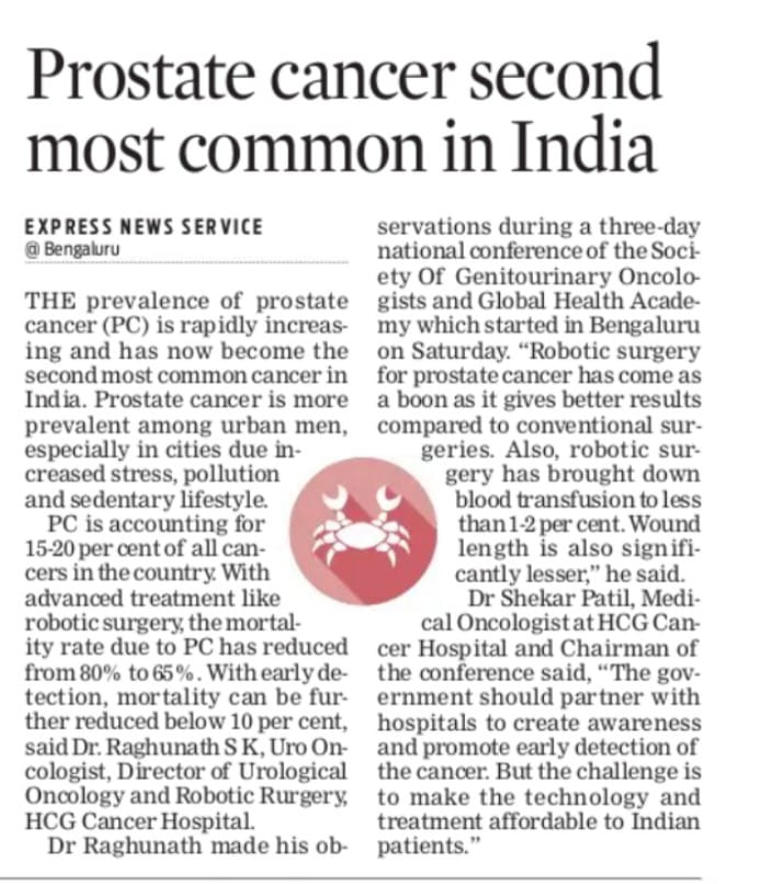 Dr. Raghunath SK is spear heading the awareness of Genito-Urinary oncology, especially prostate cancer. He speaks on these topics are various forums and news/media channels.